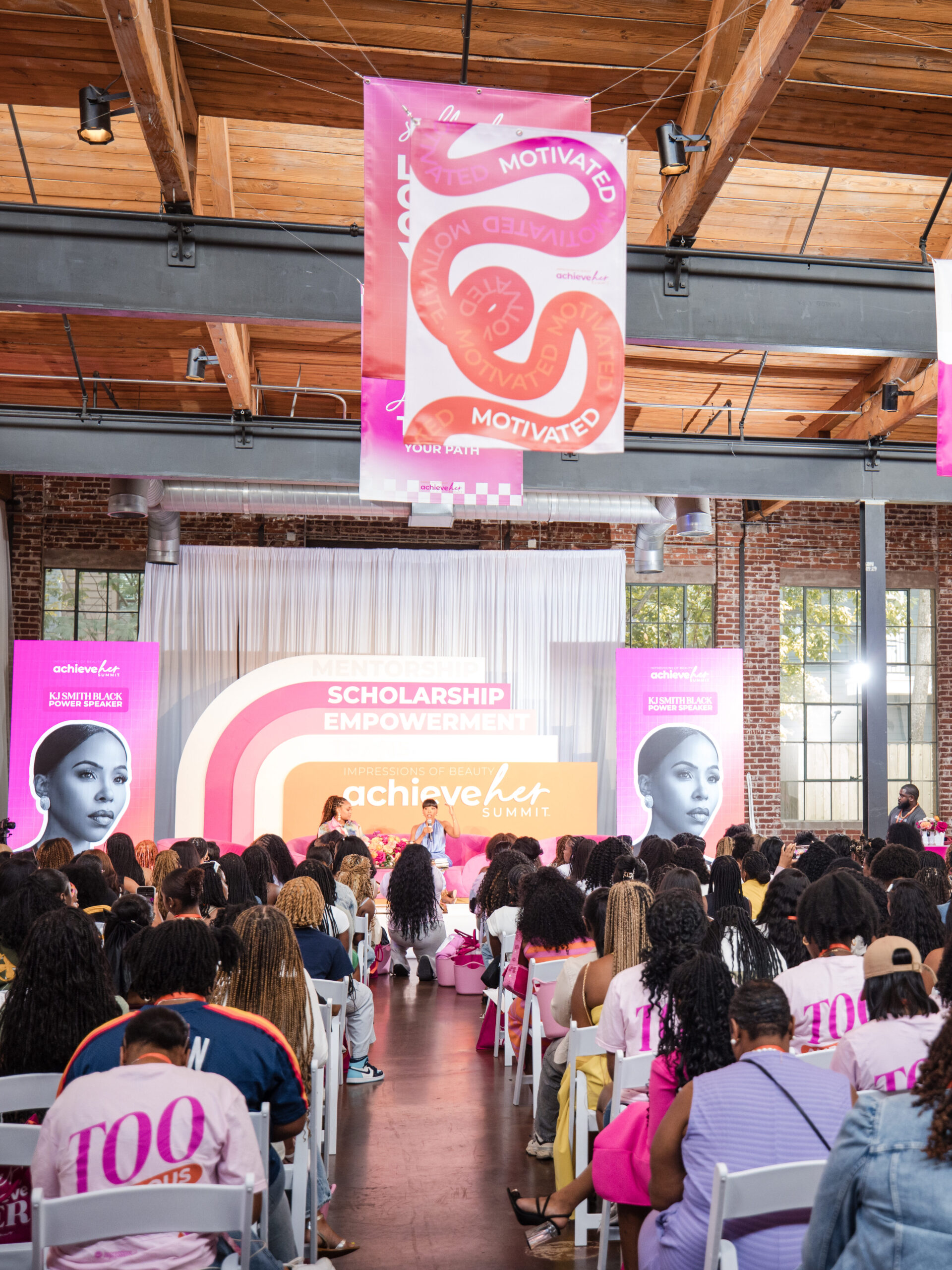 While Salter’s work was on display in one of the country’s biggest arenas, Jasmine Patrick, a fall 2024 graduate, also made her mark this summer in one of the nation’s biggest event-hosting cities. She was selected to develop a full brand suite for the inaugural, national AchieveHER Summit, hosted in Atlanta by Impressions of Beauty.